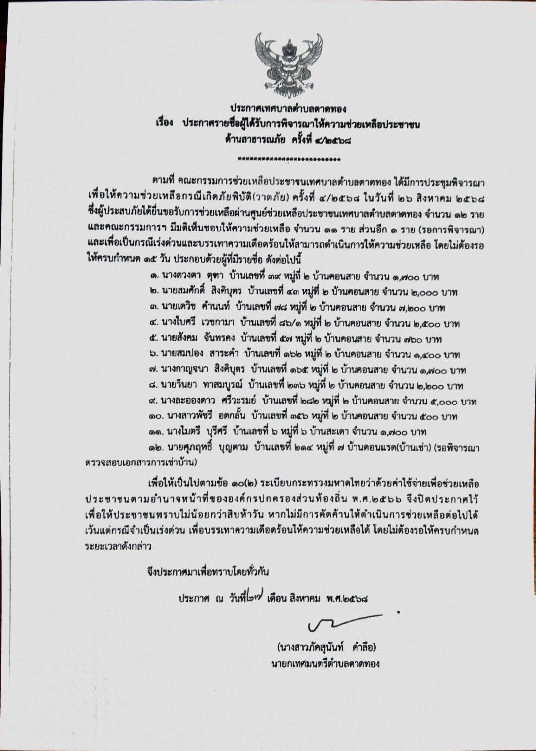 รายชื่อผู้ที่ได้รับการพิจารณาให้ความช่วยเหลือ ด้านสาธารณภัย ประจำปีงบประมาณ พ.ศ.2568